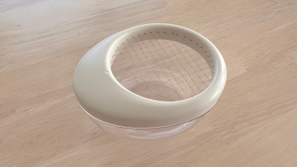 包丁を使わずに、一瞬でゆで卵を細かくできる専用ツールです。