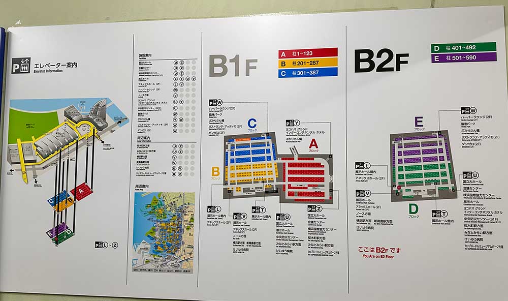 パシフィコ横浜の地下駐車場に車を停めて、地上へ