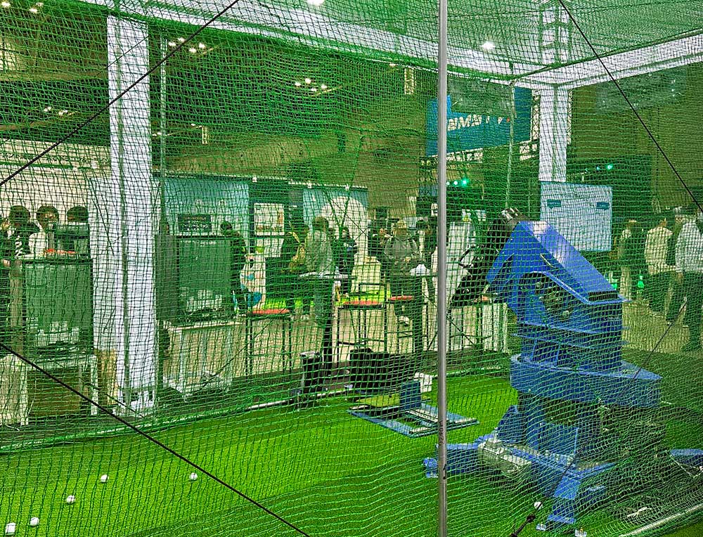 会場を歩いていると、ひときわ目を引く大型の装置に遭遇しました。なんと、一般ゴルファーからプロまで、あらゆるスイングを物理的に再現できる機械です。
